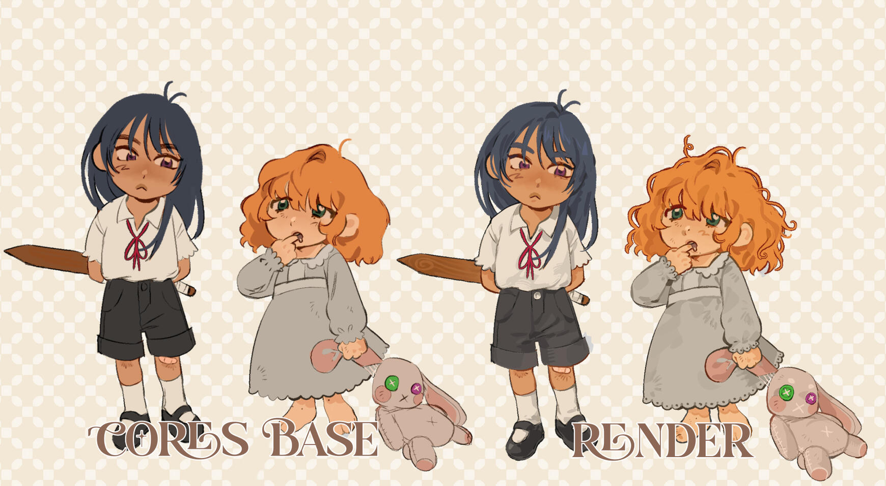 | Tipos | Lineart | Cores base | Render |